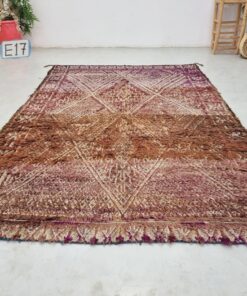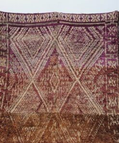 Beni M'Guild rugs, originating from the Beni M'Guild tribe in the Middle Atlas Mountains of Morocco, are striking examples of traditional Berber craftsmanship. These handwoven rugs are characterized by their deep, bold colors, intricate geometric patterns, and the use of symbolic motifs that convey the tribe's cultural stories. Often featuring a central composition surrounded by borders, Beni M'Guild rugs showcase the weaver's artistry and attention to detail. With a plush pile and a blend of rich, earthy tones, these rugs not only add warmth and texture to a space but also serve as timeless pieces that embody the heritage and creativity of the Beni M'Guild tribe.
