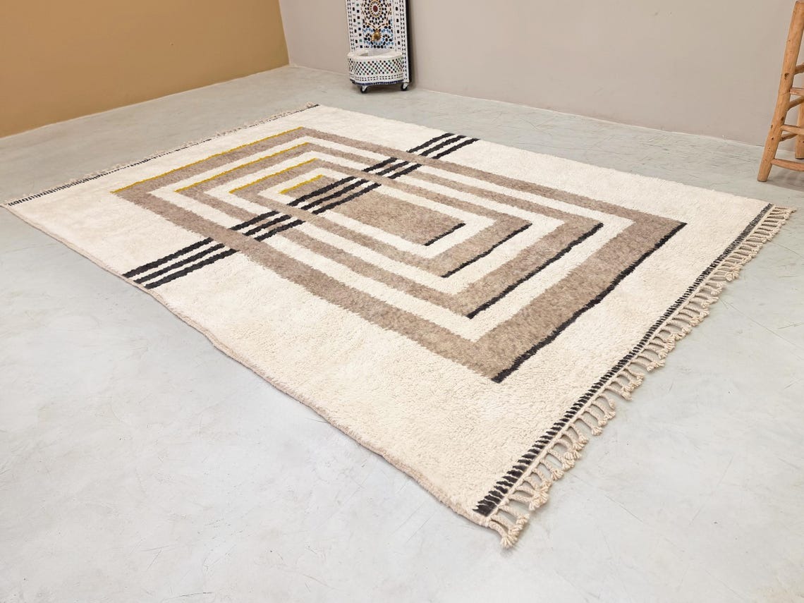 Beni Ourain Beige and White Moroccan Rug – Custom Geometric Rug