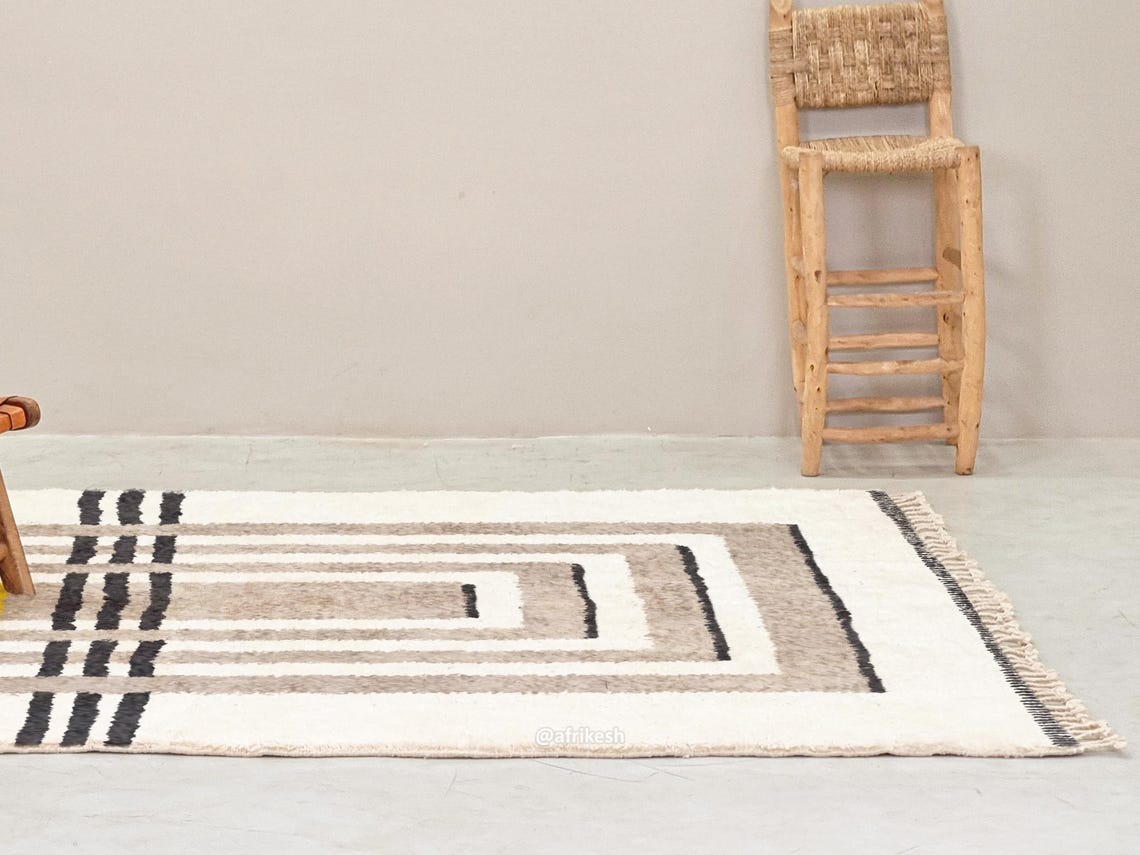 Discover Beni Ourain rugs by Afrikesh, crafted by the Beni Ourain tribe in Morocco's Atlas Mountains. These custom size rugs feature undyed wool and geometric patterns that tell a rich cultural story. With their neutral color palette and traditional craftsmanship, Beni rugs offer both aesthetic appeal and historical significance.