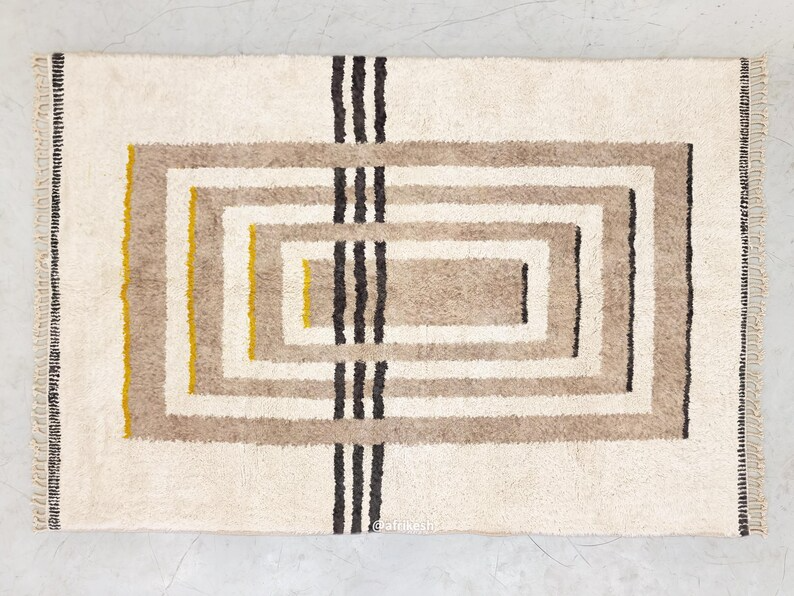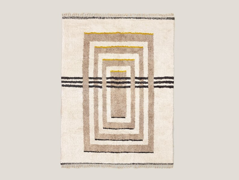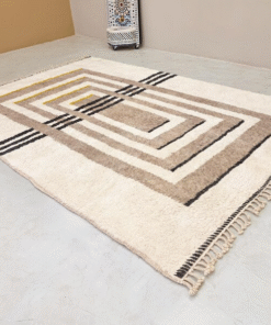 Aderfi– Beni Ourain Beige and White Rug – Custom Geometric Rug