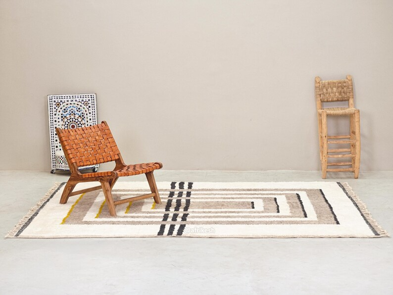 Discover Beni Ourain rugs by Afrikesh, crafted by the Beni Ourain tribe in Morocco's Atlas Mountains. These custom size rugs feature undyed wool and geometric patterns that tell a rich cultural story. With their neutral color palette and traditional craftsmanship, Beni rugs offer both aesthetic appeal and historical significance.
