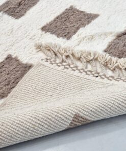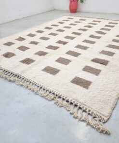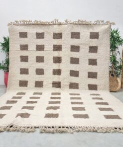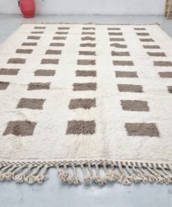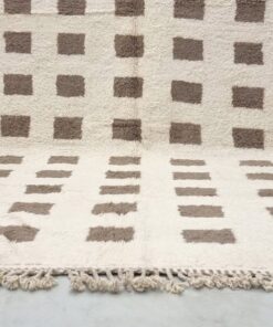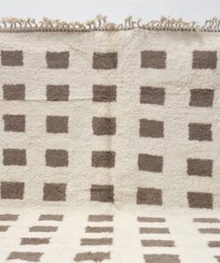 Brown And White Handmade Rug – Beni Ourain Grid Carpet 9×11