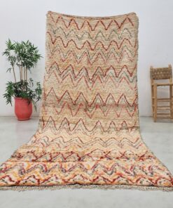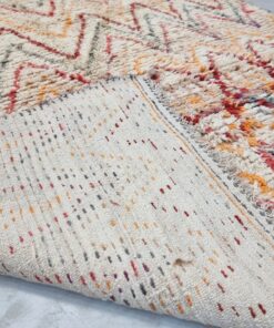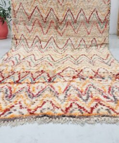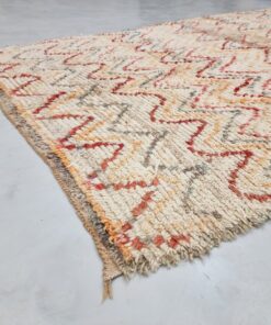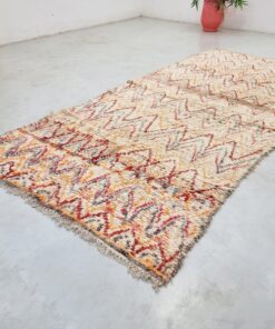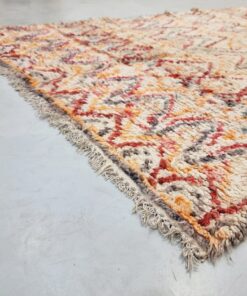 Beni M'Guild rugs, originating from the Beni M'Guild tribe in the Middle Atlas Mountains of Morocco, are striking examples of traditional Berber craftsmanship. These handwoven rugs are characterized by their deep, bold colors, intricate geometric patterns, and the use of symbolic motifs that convey the tribe's cultural stories. Often featuring a central composition surrounded by borders, Beni M'Guild rugs showcase the weaver's artistry and attention to detail. With a plush pile and a blend of rich, earthy tones, these rugs not only add warmth and texture to a space but also serve as timeless pieces that embody the heritage and creativity of the Beni M'Guild tribe.