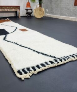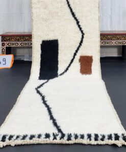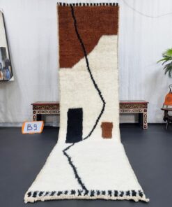 Beni Ourain Runner Rug – Abstract Custom Runner White & Brown Rug