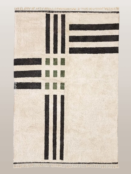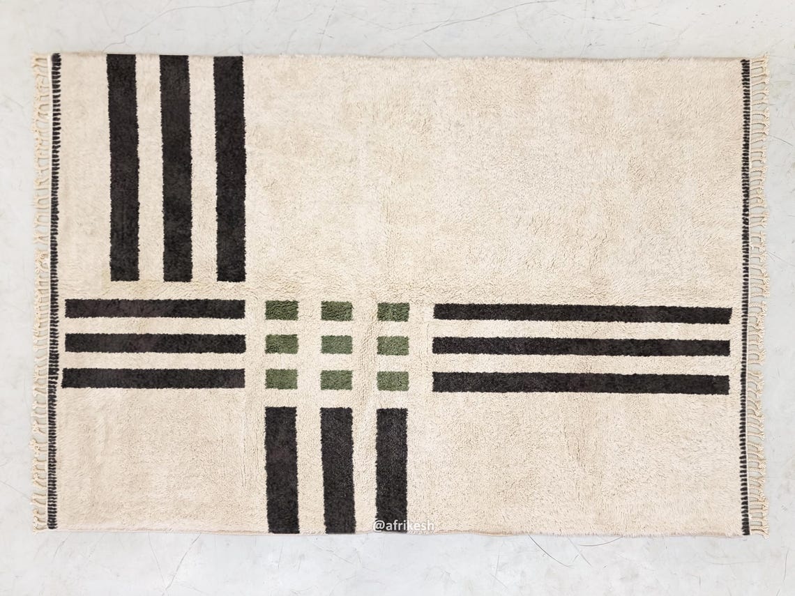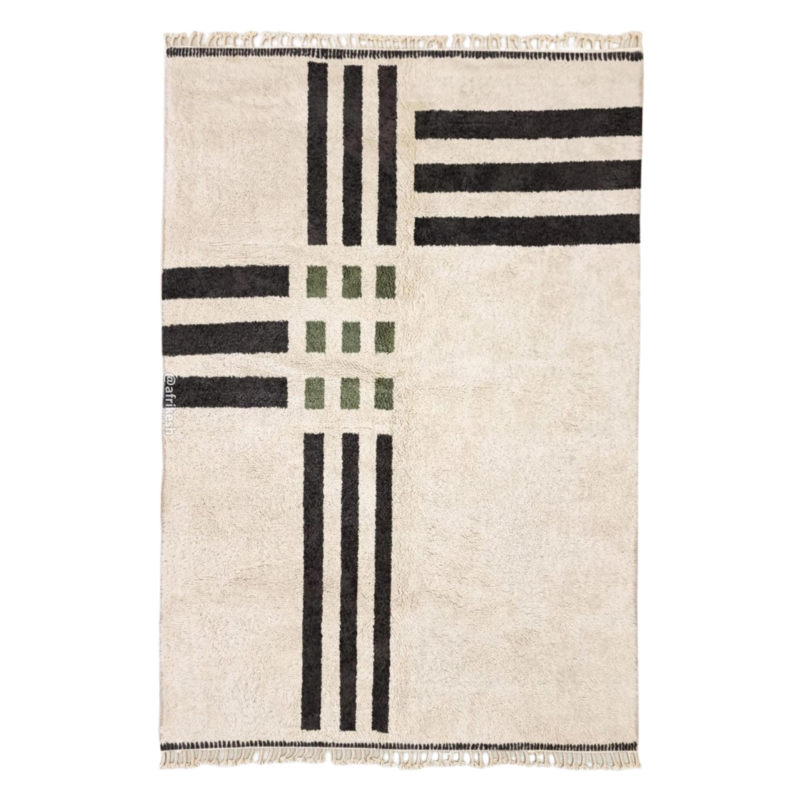 Amalina – Moroccan Beni Ourain White and Black Rug – Custom Geometric Rug