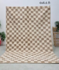Handmade Beige And White Rug – Beni Ourain Carpet 6×8