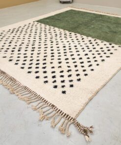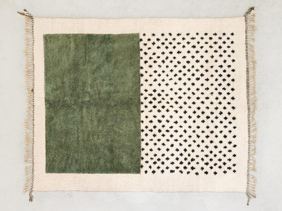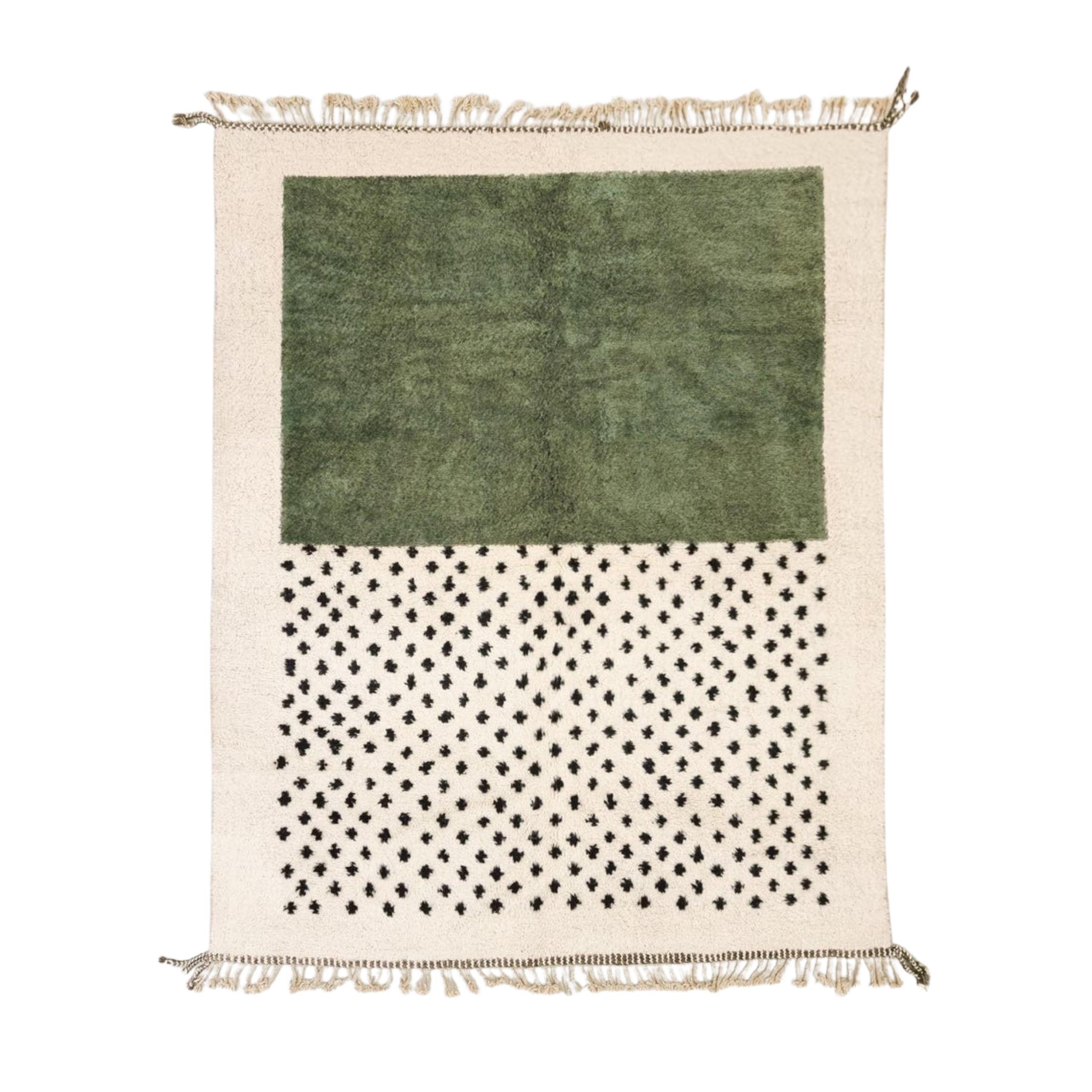 Moroccan Green And White Rug-Custom Beni Ourain Dotted Carpet