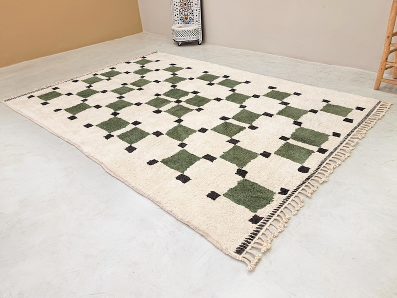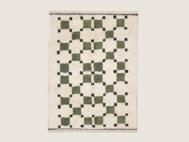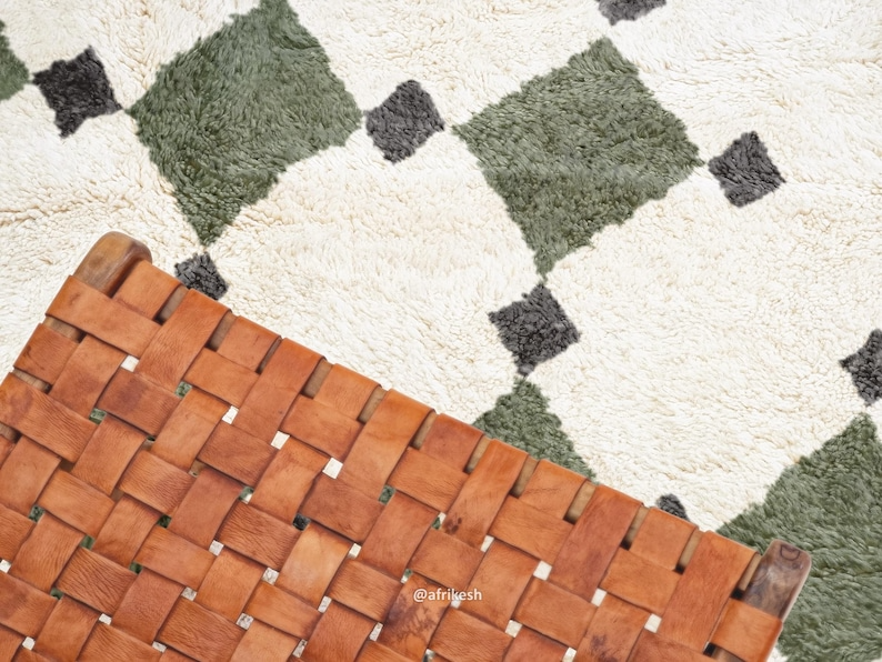 Amoud– Moroccan Beni Ourain Rug Green and White – Custom Geometric Berber Rug