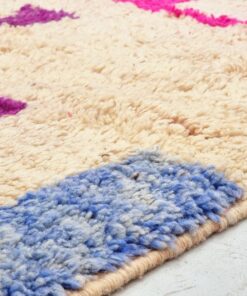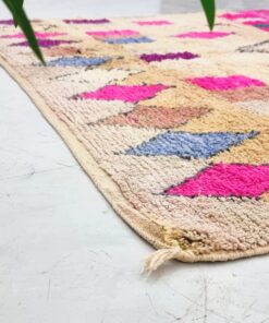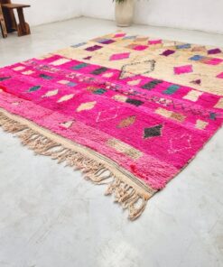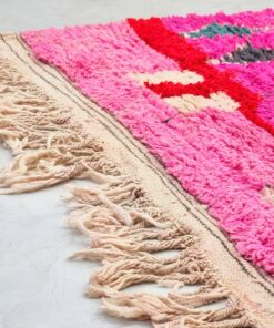Boujaad rugs, originating from the eponymous region in the Middle Atlas Mountains of Morocco, are captivating expressions of traditional craftsmanship. Known for their vibrant colors, intricate geometric patterns, and a distinctive use of red and pink hues, Boujaad rugs exude warmth and cultural richness. These handwoven gems often feature asymmetrical designs, reflecting the weaver's personal creativity within the framework of age-old techniques. A Boujaad rug is not merely a floor covering; it's a testament to the artisan's skill, the region's heritage, and the vibrant spirit of Moroccan craftsmanship.