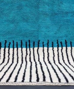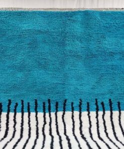 27 reviews for ASMA – Teal Blue and Black Rug – Berber Beni Ourain Striped Carpet