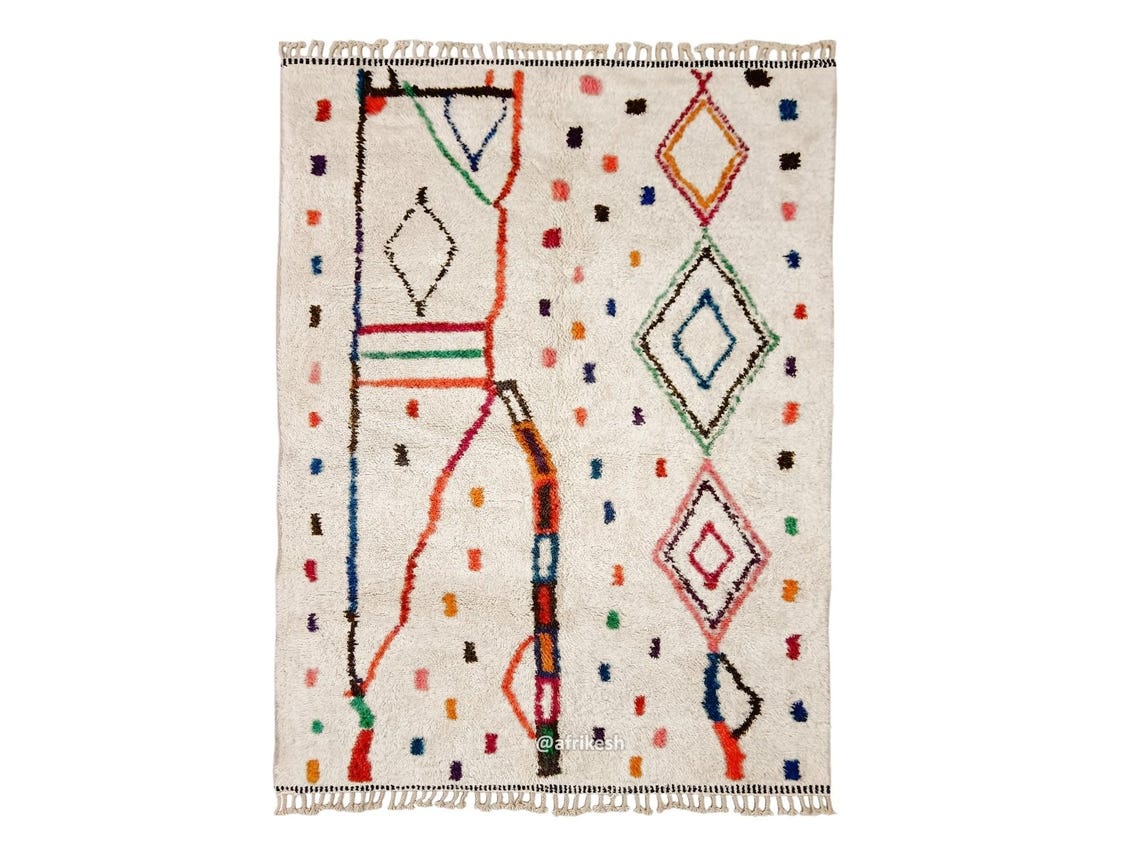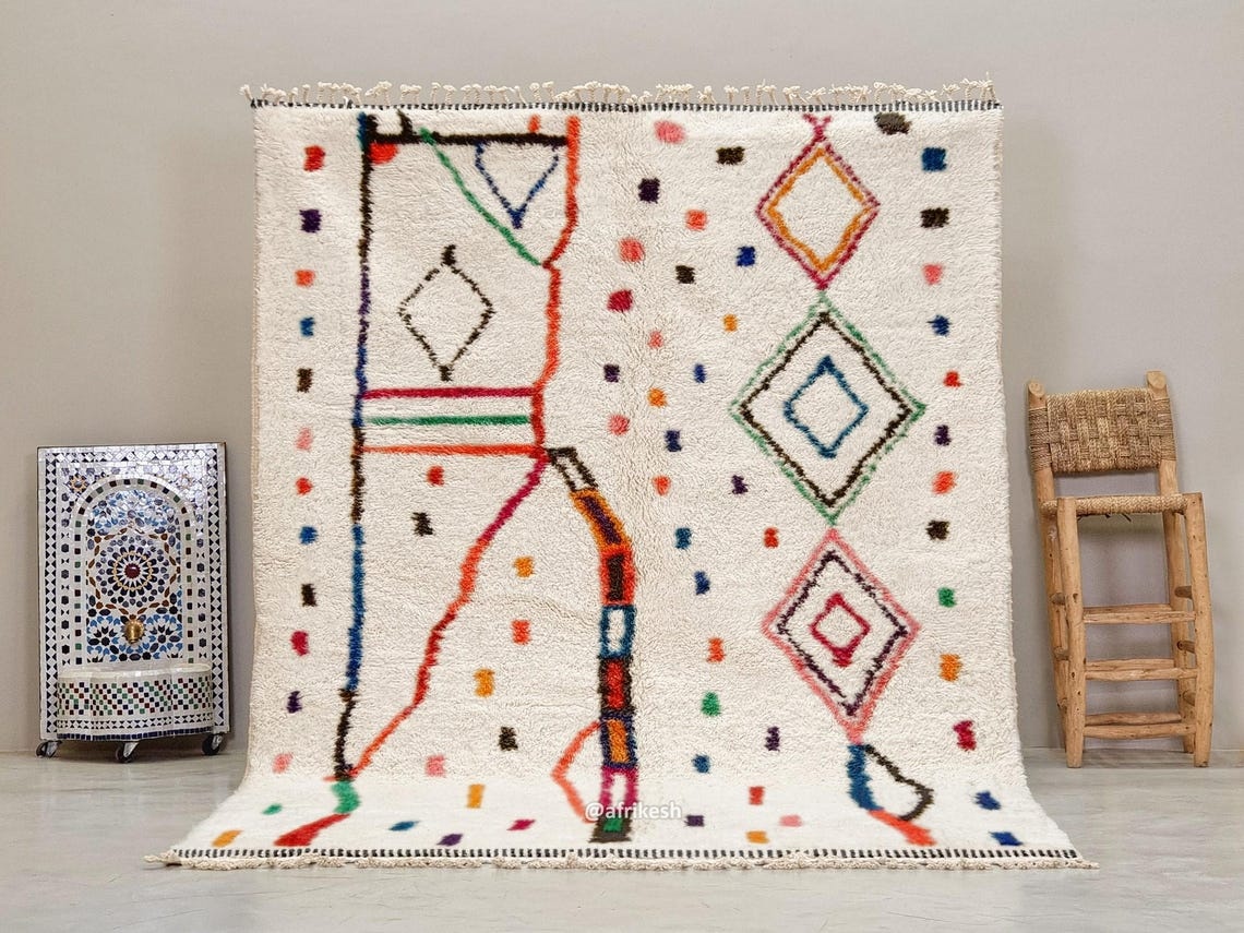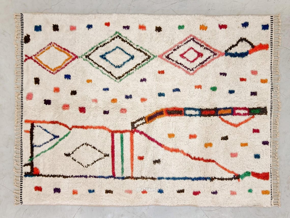 Moroccan Beni Ourain Artistic Rug- Colorful Geometric Azilal Carpet