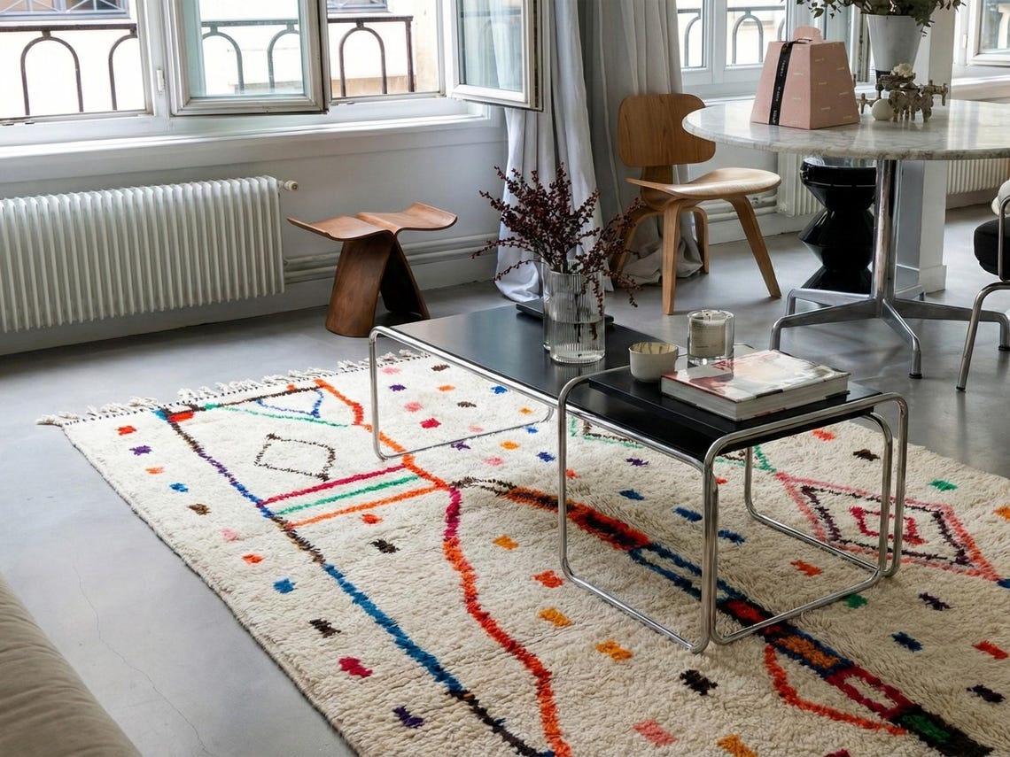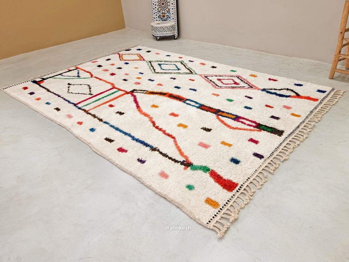 With a diverse range of customizable patterns, colors, and sizes, these rugs allow you to express your personal style while adding a touch of elegance to your decor. Known for their striking geometric designs and soft, luxurious wool, Beni Ourain rugs not only enhance the beauty of your living room, bedroom, or office but also provide warmth and comfort underfoot.