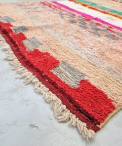 Boujaad rugs, originating from the eponymous region in the Middle Atlas Mountains of Morocco, are captivating expressions of traditional craftsmanship. Known for their vibrant colors, intricate geometric patterns, and a distinctive use of red and pink hues, Boujaad rugs exude warmth and cultural richness. These handwoven gems often feature asymmetrical designs, reflecting the weaver's personal creativity within the framework of age-old techniques. A Boujaad rug is not merely a floor covering; it's a testament to the artisan's skill, the region's heritage, and the vibrant spirit of Moroccan craftsmanship.