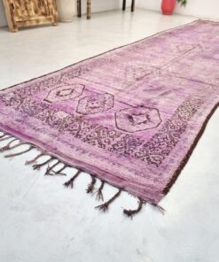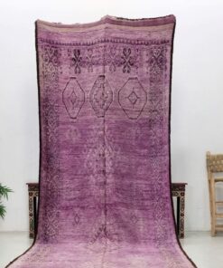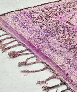 This mauve rug is a vintage Moroccan handmade sbai Mzouda tribe rug from natural wool and goat hair. A unique rare artistic handmade Moroccan carpet. Moroccan handmade rugs are considered one of the most prestigious handmade rugs of the world. Simple abstract designs, natural figures, beautiful Berber symbols, a beautiful combination of neutral and colorful colors and deep, soft piles. which make of it the best choice whether for your house or your showroom or your wall.