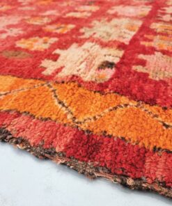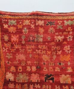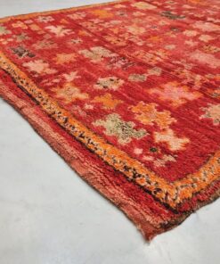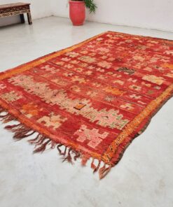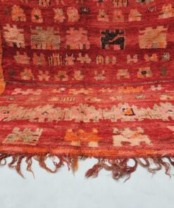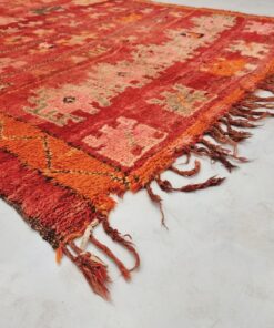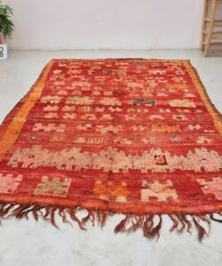 Beni M'Guild rugs, originating from the Beni M'Guild tribe in the Middle Atlas Mountains of Morocco, are striking examples of traditional Berber craftsmanship. These handwoven rugs are characterized by their deep, bold colors, intricate geometric patterns, and the use of symbolic motifs that convey the tribe's cultural stories. Often featuring a central composition surrounded by borders, Beni M'Guild rugs showcase the weaver's artistry and attention to detail. With a plush pile and a blend of rich, earthy tones, these rugs not only add warmth and texture to a space but also serve as timeless pieces that embody the heritage and creativity of the Beni M'Guild tribe.