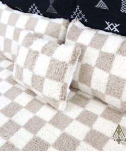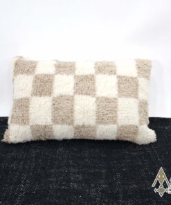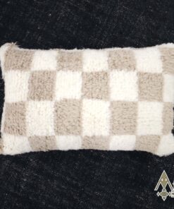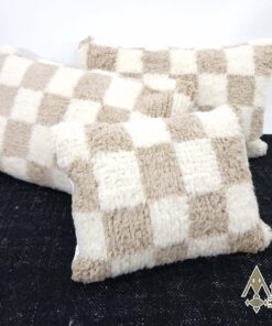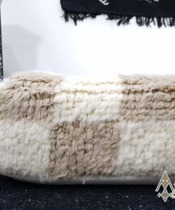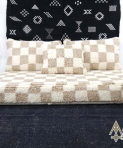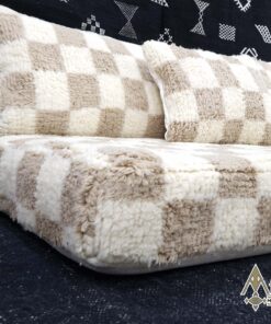 Moroccan Berber Beige Wool Floor Couch handmade in Atlas mountains of Morocco. This Checkered floor seats can add a bohemian touch to any space and work well as one or mix a few to create a cozy area.