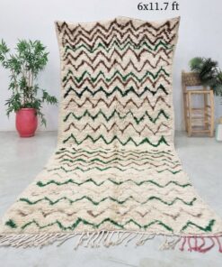 Green and Brown Rug – Boho Vintage ZigZag Carpet 6×11