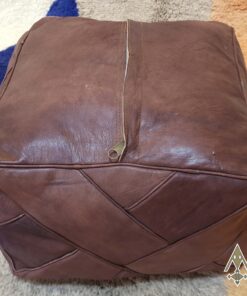 Elevate your living space with our exquisitely crafted Moroccan Leather Pouf, a testament to the skilled artisans in our small cooperative atelier. Meticulously fashioned from premium Moroccan leather, this pouf boasts an intricate and captivating geometric design, showcasing a fusion of rich cultural heritage and contemporary charm. Its versatile functionality allows for use as a footrest, additional seating, or even as a unique side table, while its inviting aesthetic effortlessly infuses a touch of bohemian elegance into any interior setting. Delivered unfilled to minimize shipping costs, this genuine Moroccan Leather Pouf is a must-have statement piece for those seeking both style and practicality.