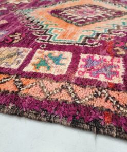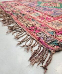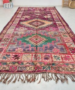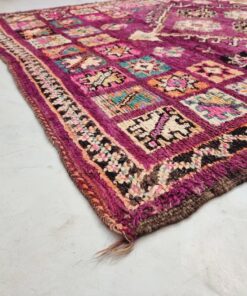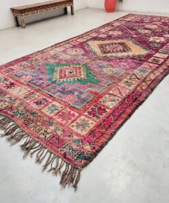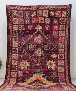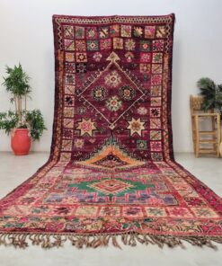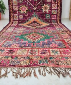 Beni M'Guild rugs, originating from the Beni M'Guild tribe in the Middle Atlas Mountains of Morocco, are striking examples of traditional Berber craftsmanship. These handwoven rugs are characterized by their deep, bold colors, intricate geometric patterns, and the use of symbolic motifs that convey the tribe's cultural stories. Often featuring a central composition surrounded by borders, Beni M'Guild rugs showcase the weaver's artistry and attention to detail. With a plush pile and a blend of rich, earthy tones, these rugs not only add warmth and texture to a space but also serve as timeless pieces that embody the heritage and creativity of the Beni M'Guild tribe.