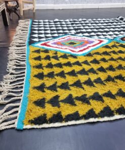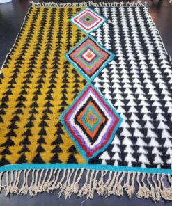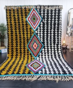 Mustard Black & White Rug – Wool Beni Ourain Geometric Rug