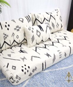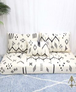 Complete White And Black Floor Seating with Pillows Set Zipped Kilim Sofa