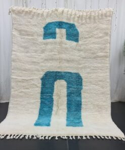 White and Blue Rug – Handmade Beni Mrirt Abstract Rug 5×7