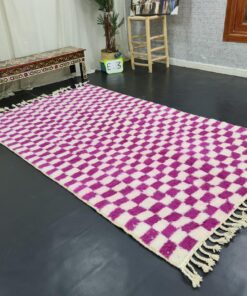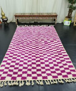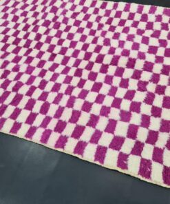 Purple Checkered Rug – Moroccan Beni Ourain Carpet 5×8