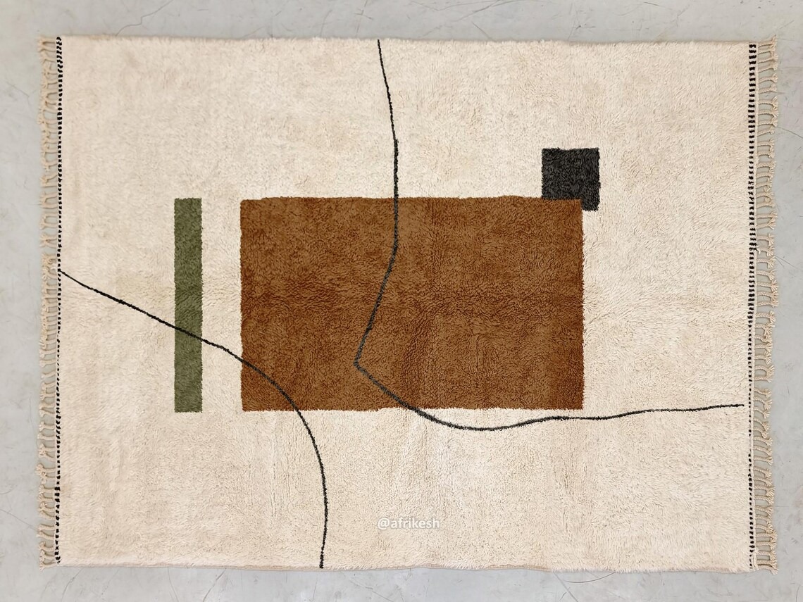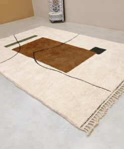 Moroccan Abstract Carpet | Beni Ourain White and Brown Rug – Custom Sizes