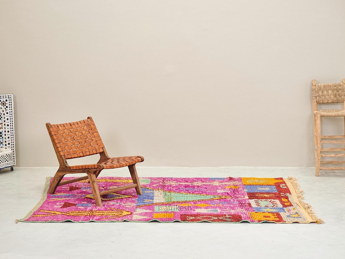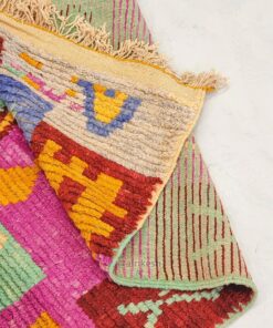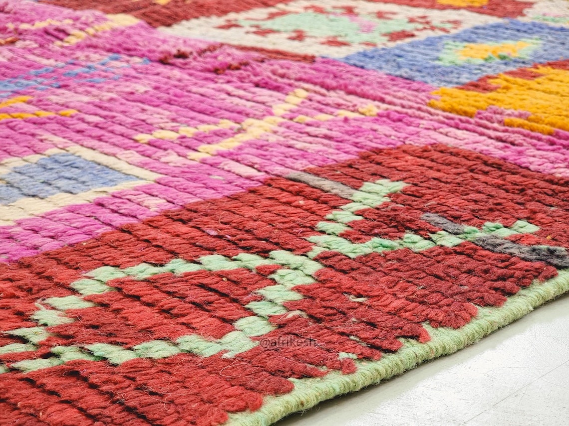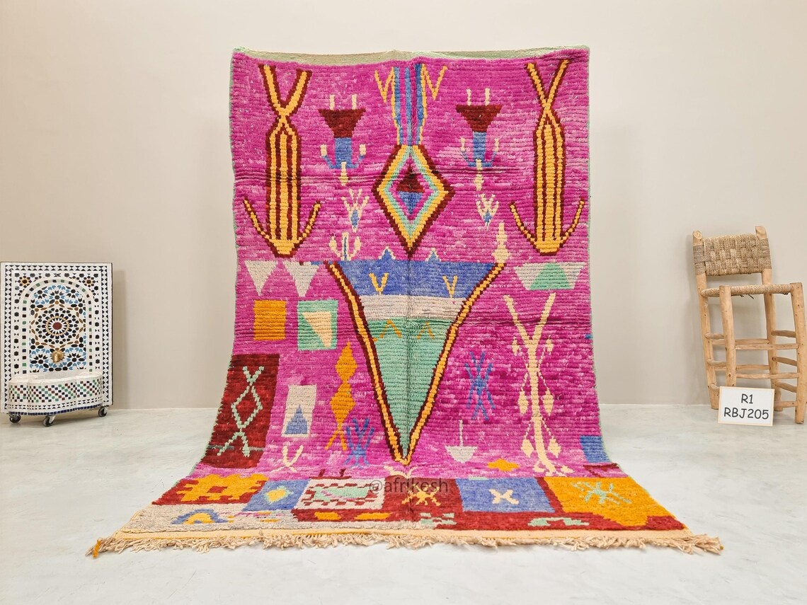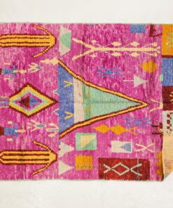 Boujaad rugs, originating from the eponymous region in the Middle Atlas Mountains of Morocco, are captivating expressions of traditional craftsmanship. Known for their vibrant colors, intricate geometric patterns, and a distinctive use of red and pink hues, Boujaad rugs exude warmth and cultural richness. These handwoven gems often feature asymmetrical designs, reflecting the weaver's personal creativity within the framework of age-old techniques. A Boujaad rug is not merely a floor covering; it's a testament to the artisan's skill, the region's heritage, and the vibrant spirit of Moroccan craftsmanship.