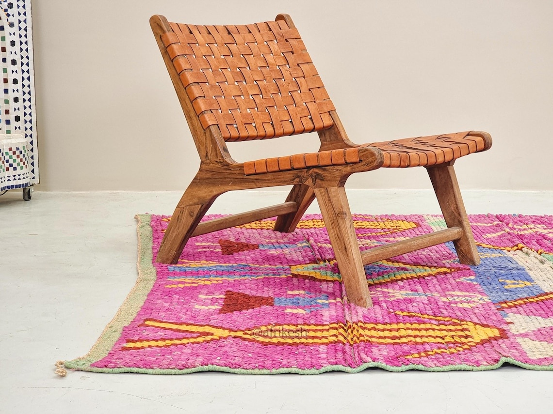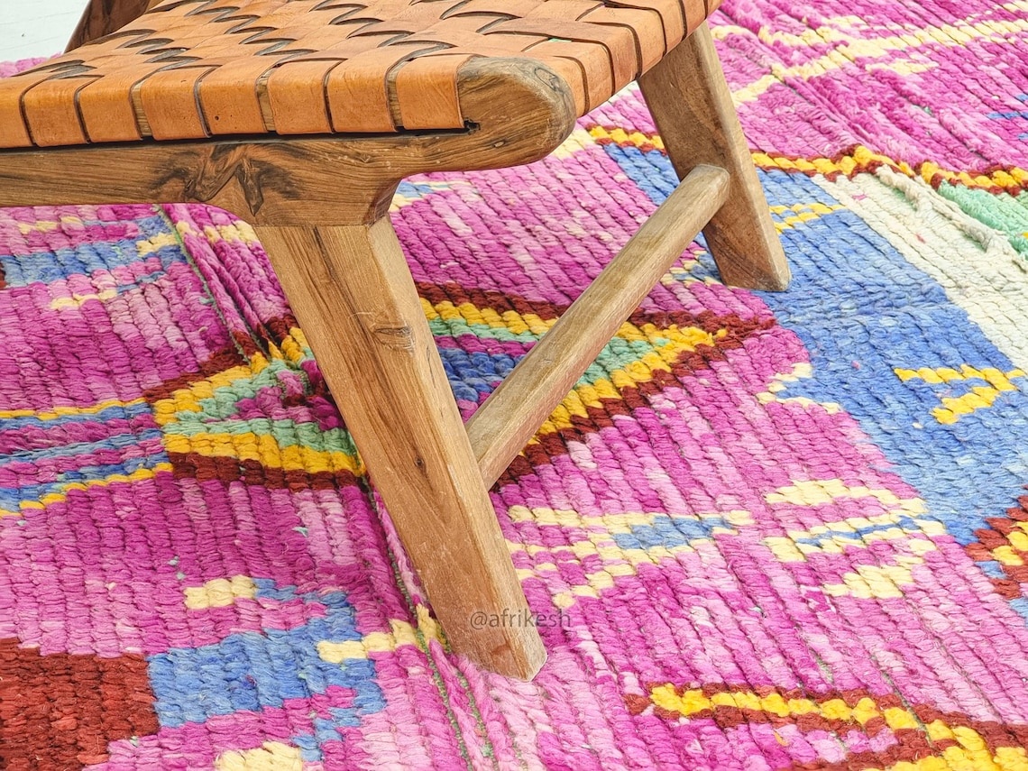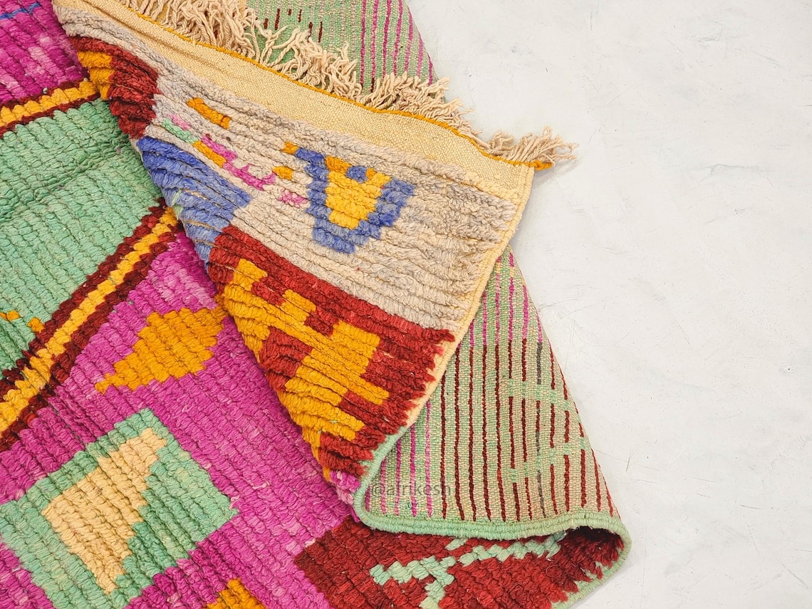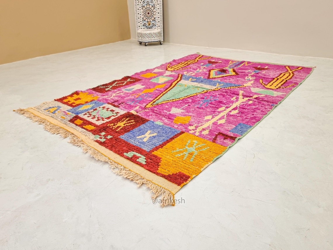 Boujaad rugs, originating from the eponymous region in the Middle Atlas Mountains of Morocco, are captivating expressions of traditional craftsmanship. Known for their vibrant colors, intricate geometric patterns, and a distinctive use of red and pink hues, Boujaad rugs exude warmth and cultural richness. These handwoven gems often feature asymmetrical designs, reflecting the weaver's personal creativity within the framework of age-old techniques. A Boujaad rug is not merely a floor covering; it's a testament to the artisan's skill, the region's heritage, and the vibrant spirit of Moroccan craftsmanship.