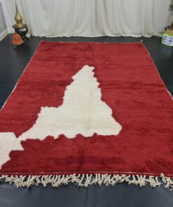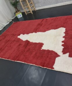 Red Beni Ourain Rug – Handmade Abstract Carpet 7×10