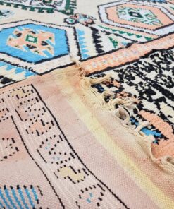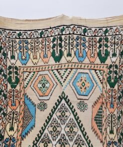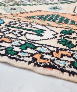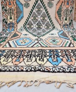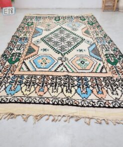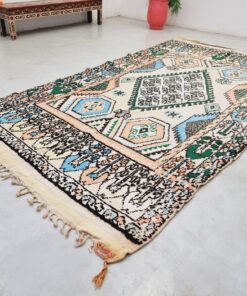 Beni M'Guild rugs, originating from the Beni M'Guild tribe in the Middle Atlas Mountains of Morocco, are striking examples of traditional Berber craftsmanship. These handwoven rugs are characterized by their deep, bold colors, intricate geometric patterns, and the use of symbolic motifs that convey the tribe's cultural stories. Often featuring a central composition surrounded by borders, Beni M'Guild rugs showcase the weaver's artistry and attention to detail. With a plush pile and a blend of rich, earthy tones, these rugs not only add warmth and texture to a space but also serve as timeless pieces that embody the heritage and creativity of the Beni M'Guild tribe.