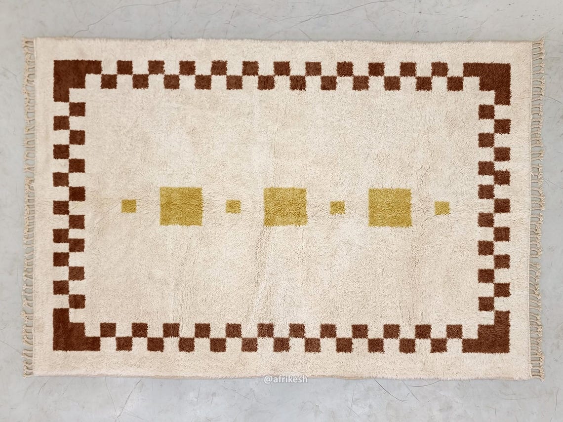 Beni Ourain Brown and White Rug – Geometric Custom Rug