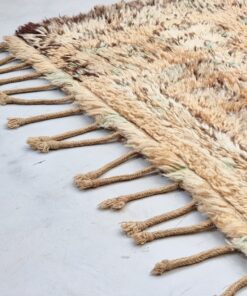 Beni M'Guild rugs, originating from the Beni M'Guild tribe in the Middle Atlas Mountains of Morocco, are striking examples of traditional Berber craftsmanship. These handwoven rugs are characterized by their deep, bold colors, intricate geometric patterns, and the use of symbolic motifs that convey the tribe's cultural stories. Often featuring a central composition surrounded by borders, Beni M'Guild rugs showcase the weaver's artistry and attention to detail. With a plush pile and a blend of rich, earthy tones, these rugs not only add warmth and texture to a space but also serve as timeless pieces that embody the heritage and creativity of the Beni M'Guild tribe.