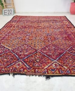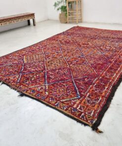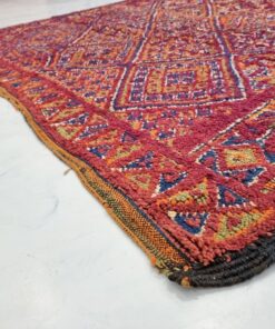 Beni M'Guild rugs, originating from the Beni M'Guild tribe in the Middle Atlas Mountains of Morocco, are striking examples of traditional Berber craftsmanship. These handwoven rugs are characterized by their deep, bold colors, intricate geometric patterns, and the use of symbolic motifs that convey the tribe's cultural stories. Often featuring a central composition surrounded by borders, Beni M'Guild rugs showcase the weaver's artistry and attention to detail. With a plush pile and a blend of rich, earthy tones, these rugs not only add warmth and texture to a space but also serve as timeless pieces that embody the heritage and creativity of the Beni M'Guild tribe.