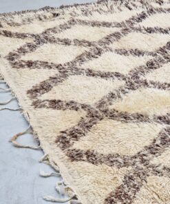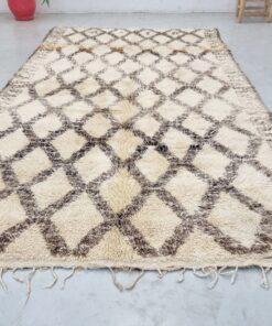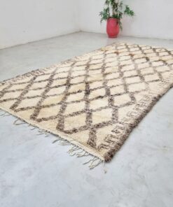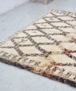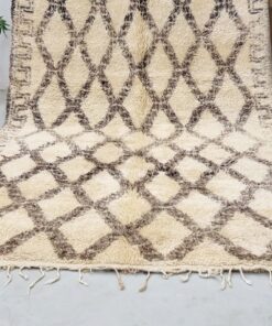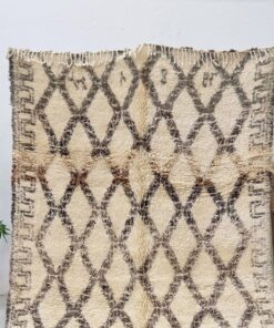 Beni Ourain Cream and Brown Rug – Vintage Geometric Rug 5×10