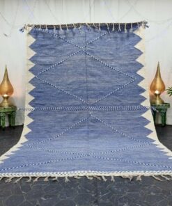 1 review for FAUZIA – Blue And White Rug – Berber Kilim Geometric Carpet