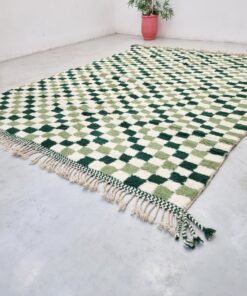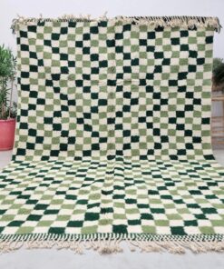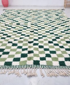 Moroccan Green Checkered Rug – Beni Ourain Wool Rug 8×11
