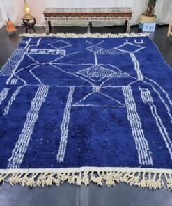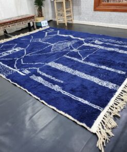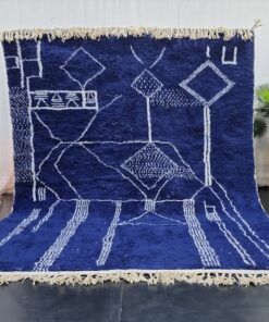 Dark Blue Rug – Handmade Beni Ourain Abstract Rug