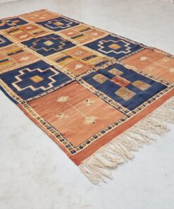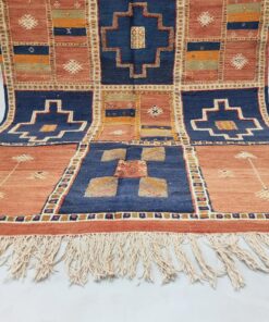 Taznakht rugs, hailing from the town of Taznakht in the High Atlas region of Morocco, are woven treasures that reflect the rich cultural tapestry of the Berber people. Known for their vibrant colors and intricate designs, Taznakht rugs often feature geometric patterns and symbolic motifs, each telling a unique story. The weavers infuse these rugs with a bold, lively spirit, utilizing a diverse palette and skillful techniques. Taznakht rugs not only serve as beautiful and functional floor coverings but also stand as proud representations of Berber tradition and artistic expression.