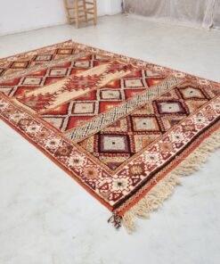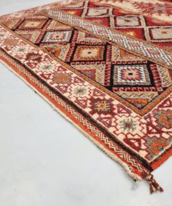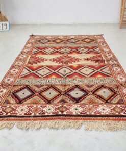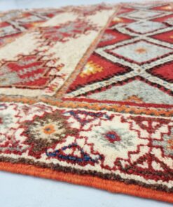 Taznakht rugs, hailing from the town of Taznakht in the High Atlas region of Morocco, are woven treasures that reflect the rich cultural tapestry of the Berber people. Known for their vibrant colors and intricate designs, Taznakht rugs often feature geometric patterns and symbolic motifs, each telling a unique story. The weavers infuse these rugs with a bold, lively spirit, utilizing a diverse palette and skillful techniques. Taznakht rugs not only serve as beautiful and functional floor coverings but also stand as proud representations of Berber tradition and artistic expression.
