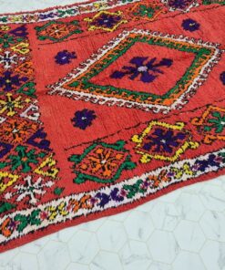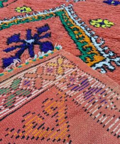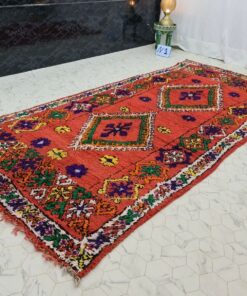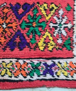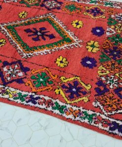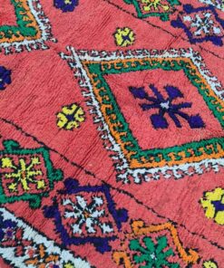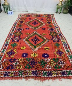 Beni M'Guild rugs, originating from the Beni M'Guild tribe in the Middle Atlas Mountains of Morocco, are striking examples of traditional Berber craftsmanship. These handwoven rugs are characterized by their deep, bold colors, intricate geometric patterns, and the use of symbolic motifs that convey the tribe's cultural stories. Often featuring a central composition surrounded by borders, Beni M'Guild rugs showcase the weaver's artistry and attention to detail. With a plush pile and a blend of rich, earthy tones, these rugs not only add warmth and texture to a space but also serve as timeless pieces that embody the heritage and creativity of the Beni M'Guild tribe.