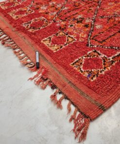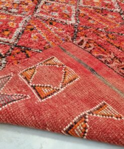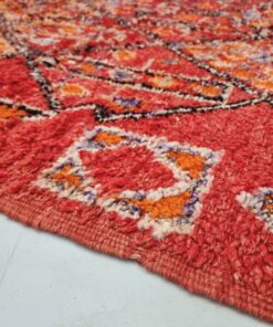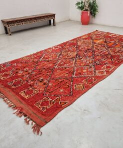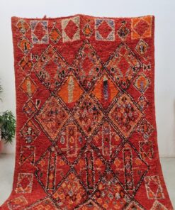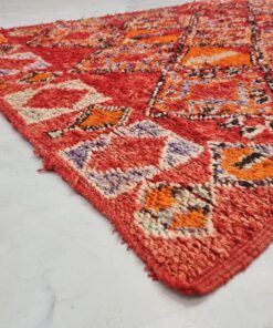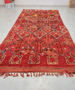 Beni M'Guild rugs, originating from the Beni M'Guild tribe in the Middle Atlas Mountains of Morocco, are striking examples of traditional Berber craftsmanship. These handwoven rugs are characterized by their deep, bold colors, intricate geometric patterns, and the use of symbolic motifs that convey the tribe's cultural stories. Often featuring a central composition surrounded by borders, Beni M'Guild rugs showcase the weaver's artistry and attention to detail. With a plush pile and a blend of rich, earthy tones, these rugs not only add warmth and texture to a space but also serve as timeless pieces that embody the heritage and creativity of the Beni M'Guild tribe.
