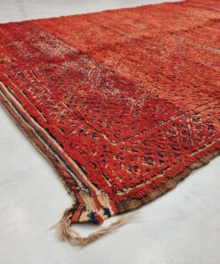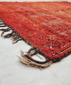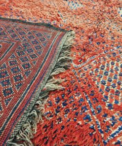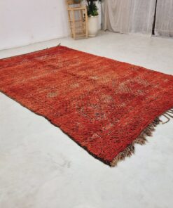 Beni M'Guild rugs, originating from the Beni M'Guild tribe in the Middle Atlas Mountains of Morocco, are striking examples of traditional Berber craftsmanship. These handwoven rugs are characterized by their deep, bold colors, intricate geometric patterns, and the use of symbolic motifs that convey the tribe's cultural stories. Often featuring a central composition surrounded by borders, Beni M'Guild rugs showcase the weaver's artistry and attention to detail. With a plush pile and a blend of rich, earthy tones, these rugs not only add warmth and texture to a space but also serve as timeless pieces that embody the heritage and creativity of the Beni M'Guild tribe.