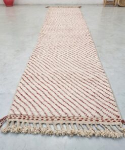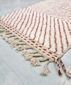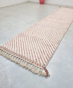 Maroon And White Striped Carpet – Beni Ourain Rug 3×15