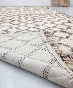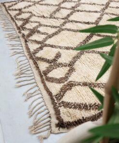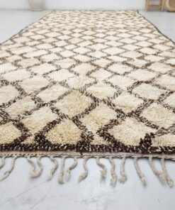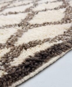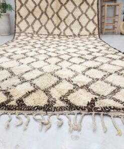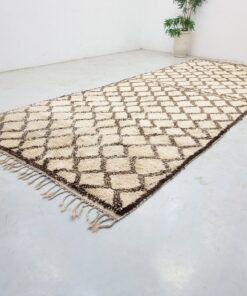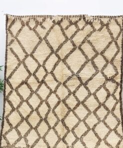 Cream & Brown Beni Ourain Rug – Vintage Geometric Rug 6×16