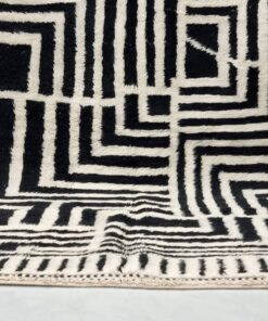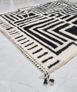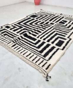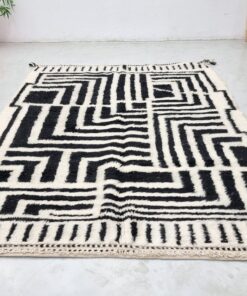 Black And White Moroccan Rug – Beni Ourain Abstract Carpet 6×8