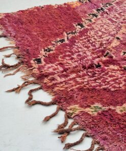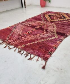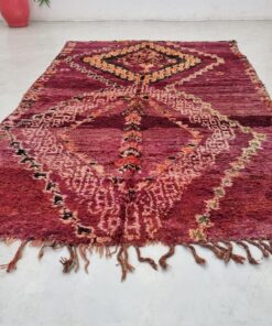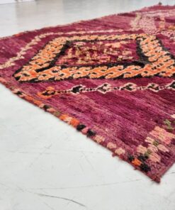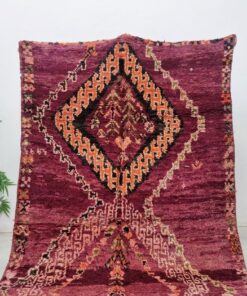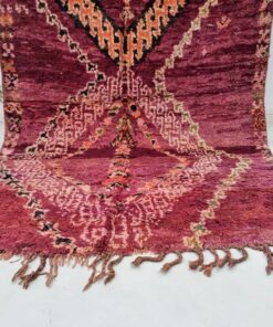 Beni M'Guild rugs, originating from the Beni M'Guild tribe in the Middle Atlas Mountains of Morocco, are striking examples of traditional Berber craftsmanship. These handwoven rugs are characterized by their deep, bold colors, intricate geometric patterns, and the use of symbolic motifs that convey the tribe's cultural stories. Often featuring a central composition surrounded by borders, Beni M'Guild rugs showcase the weaver's artistry and attention to detail. With a plush pile and a blend of rich, earthy tones, these rugs not only add warmth and texture to a space but also serve as timeless pieces that embody the heritage and creativity of the Beni M'Guild tribe.