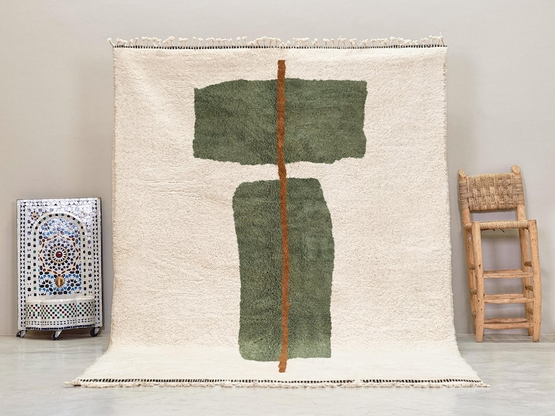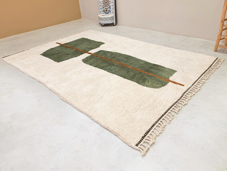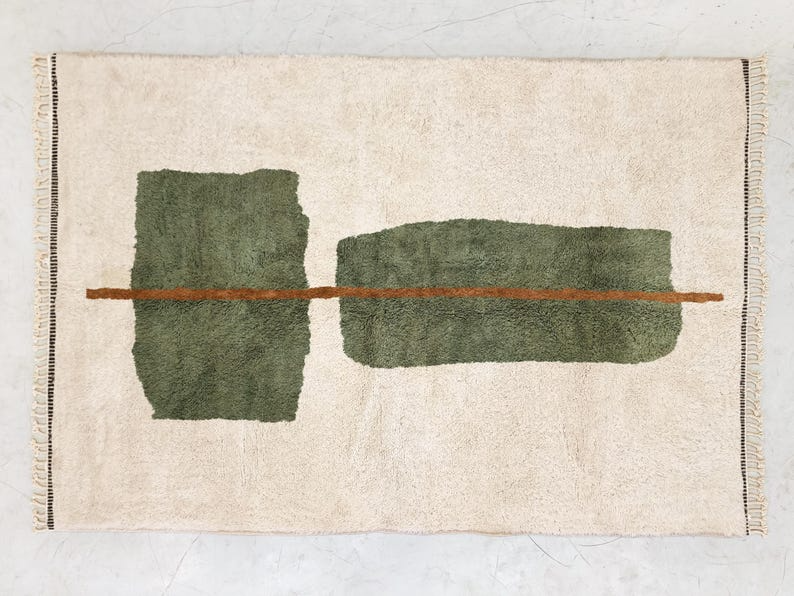 Green and White Rug – Beni Ourain Abstract Custom Rug
