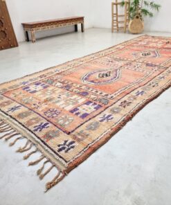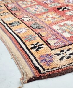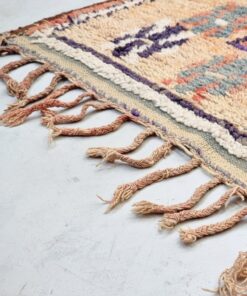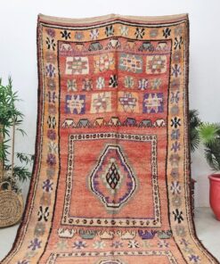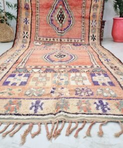 Beni M'Guild rugs, originating from the Beni M'Guild tribe in the Middle Atlas Mountains of Morocco, are striking examples of traditional Berber craftsmanship. These handwoven rugs are characterized by their deep, bold colors, intricate geometric patterns, and the use of symbolic motifs that convey the tribe's cultural stories. Often featuring a central composition surrounded by borders, Beni M'Guild rugs showcase the weaver's artistry and attention to detail. With a plush pile and a blend of rich, earthy tones, these rugs not only add warmth and texture to a space but also serve as timeless pieces that embody the heritage and creativity of the Beni M'Guild tribe.